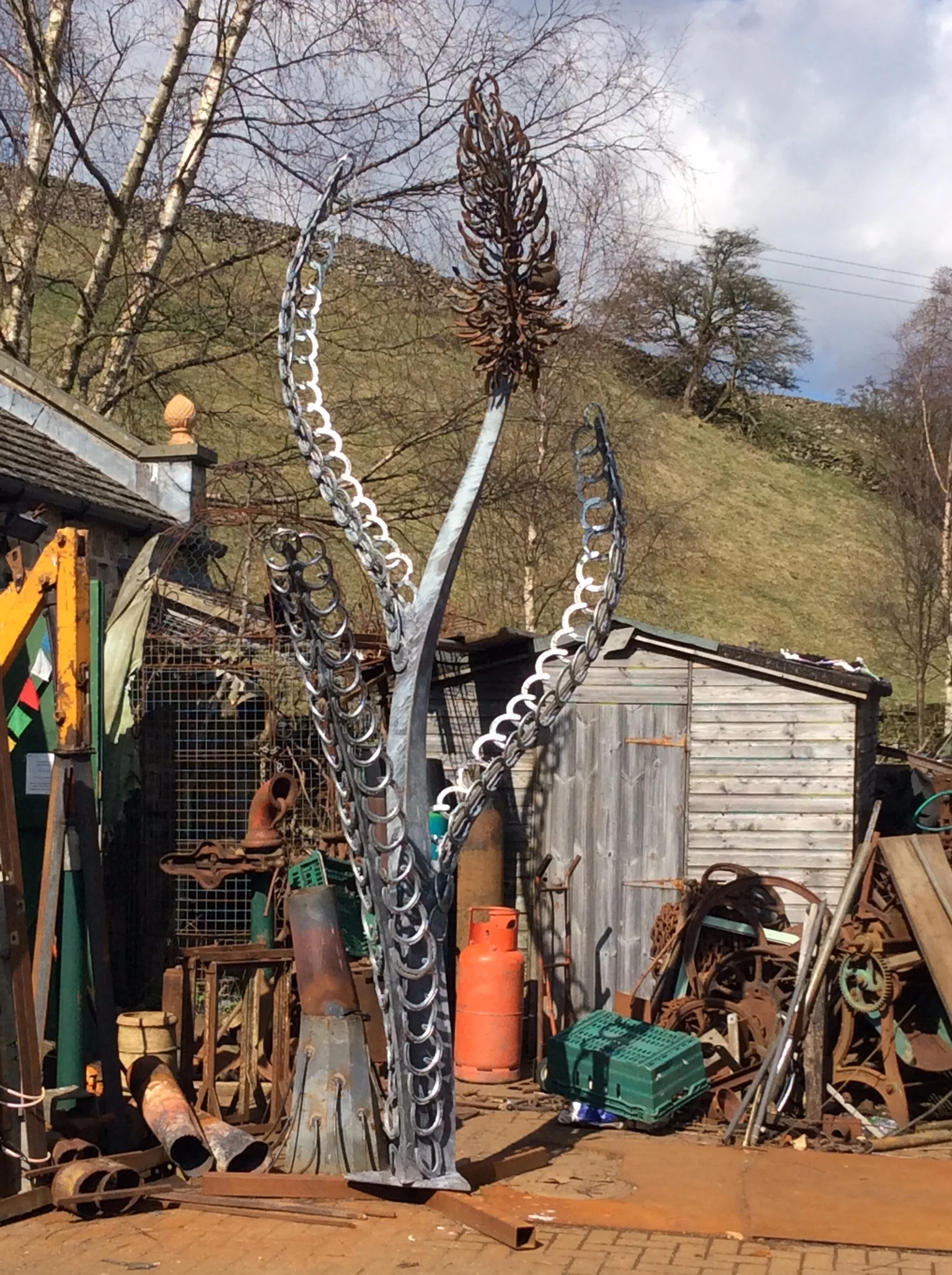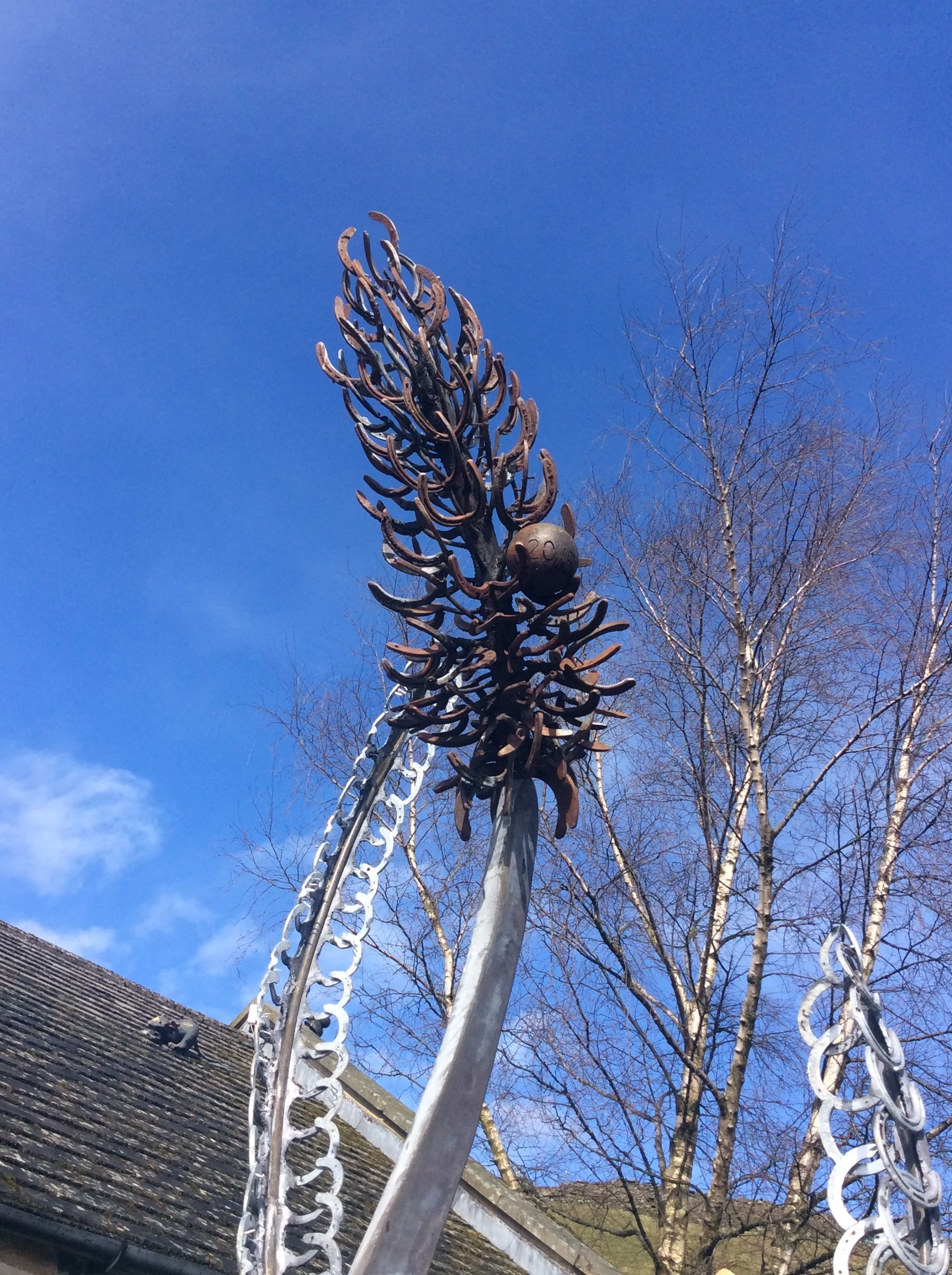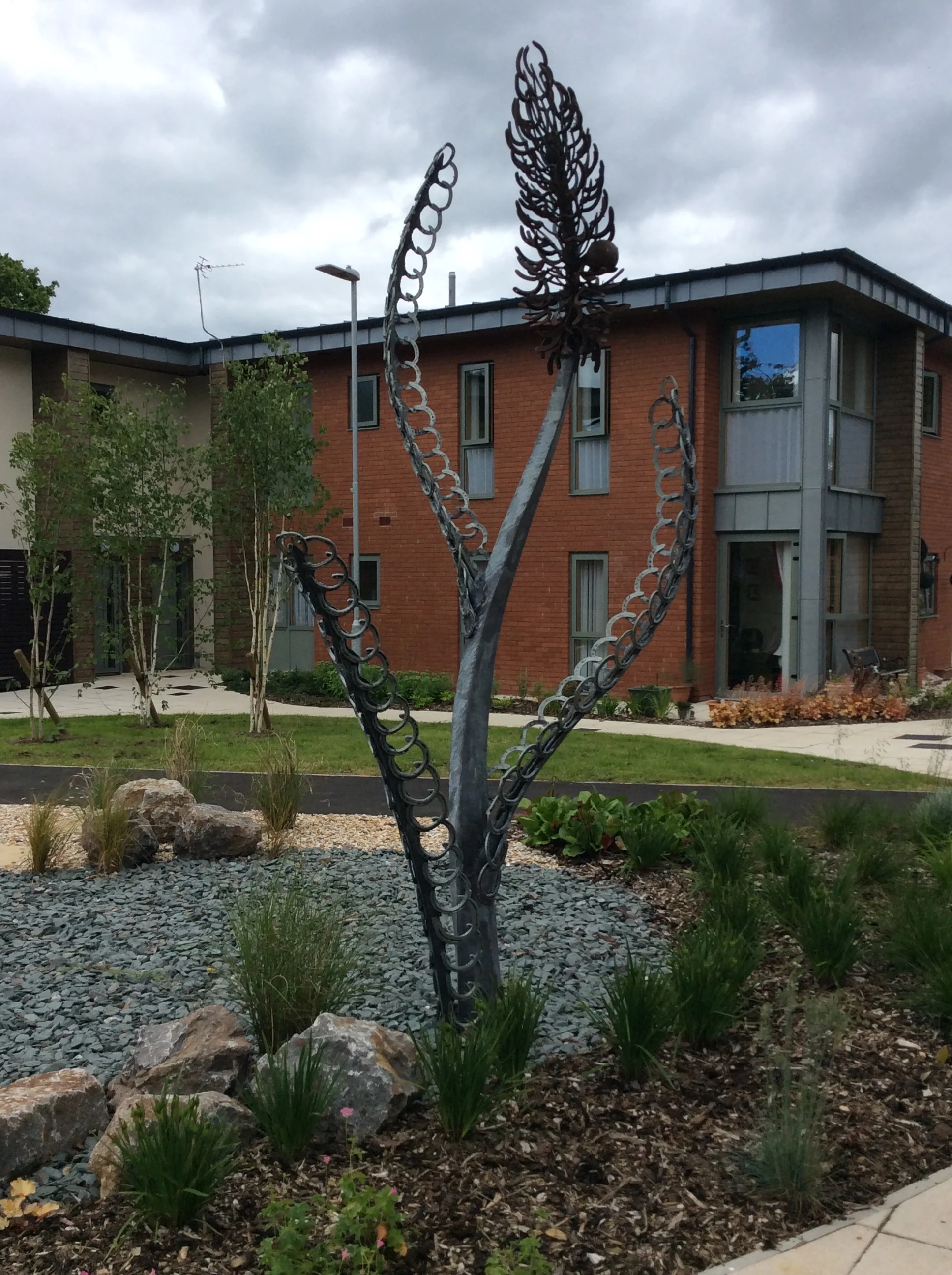 Clearly, with both the agricultural and racing connections, horses have had a major impact on the community and its environs. Sedge incorporates all these elements into a 4 metre, stylised sedge plant constructed from welded galvinised steel and utilises horseshoes within the sculpture.